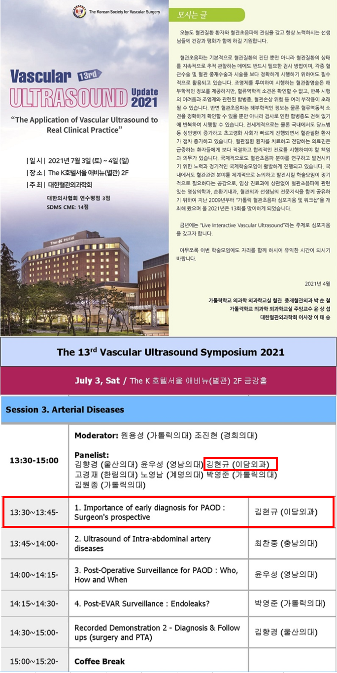 2021. 07. 03(토) '김현규 원장' 혈관학회 발표 『PAOD에 대한 조기 진단의 중요성』