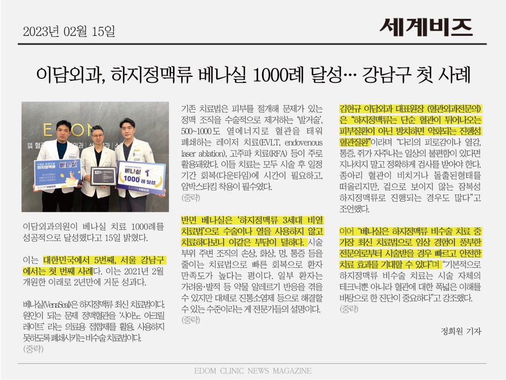 이담외과, 하지정맥류 베나실 1000례 달성… 강남구 첫 사례
