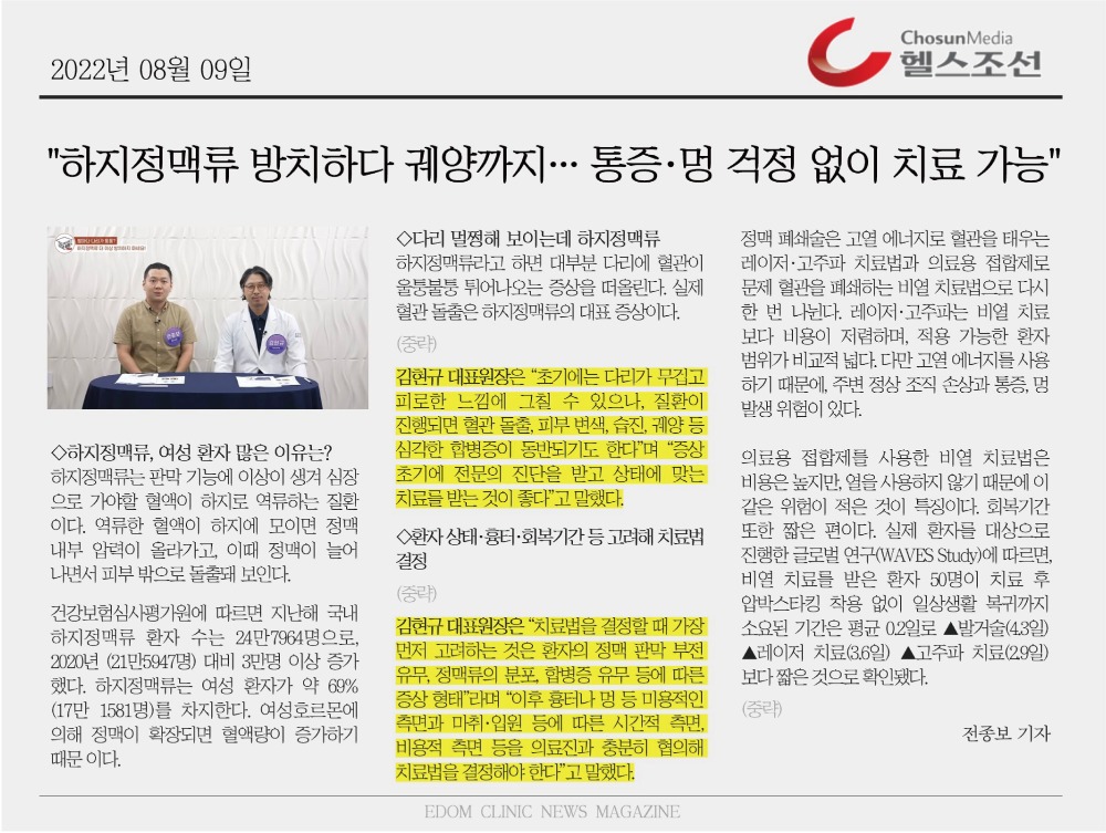 [유튜브 헬스조선tv 건강똑똑] 하지정맥류 편 (22.07.22)