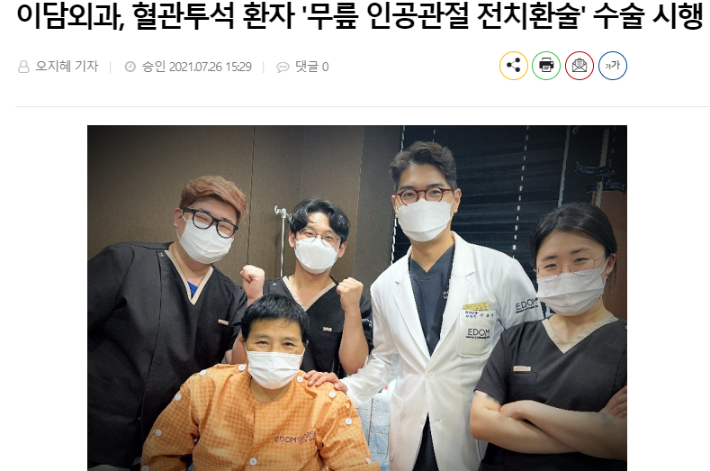 이담외과, 혈액투석 환자 '무릎 인공관절 전치환술' 수술 시행