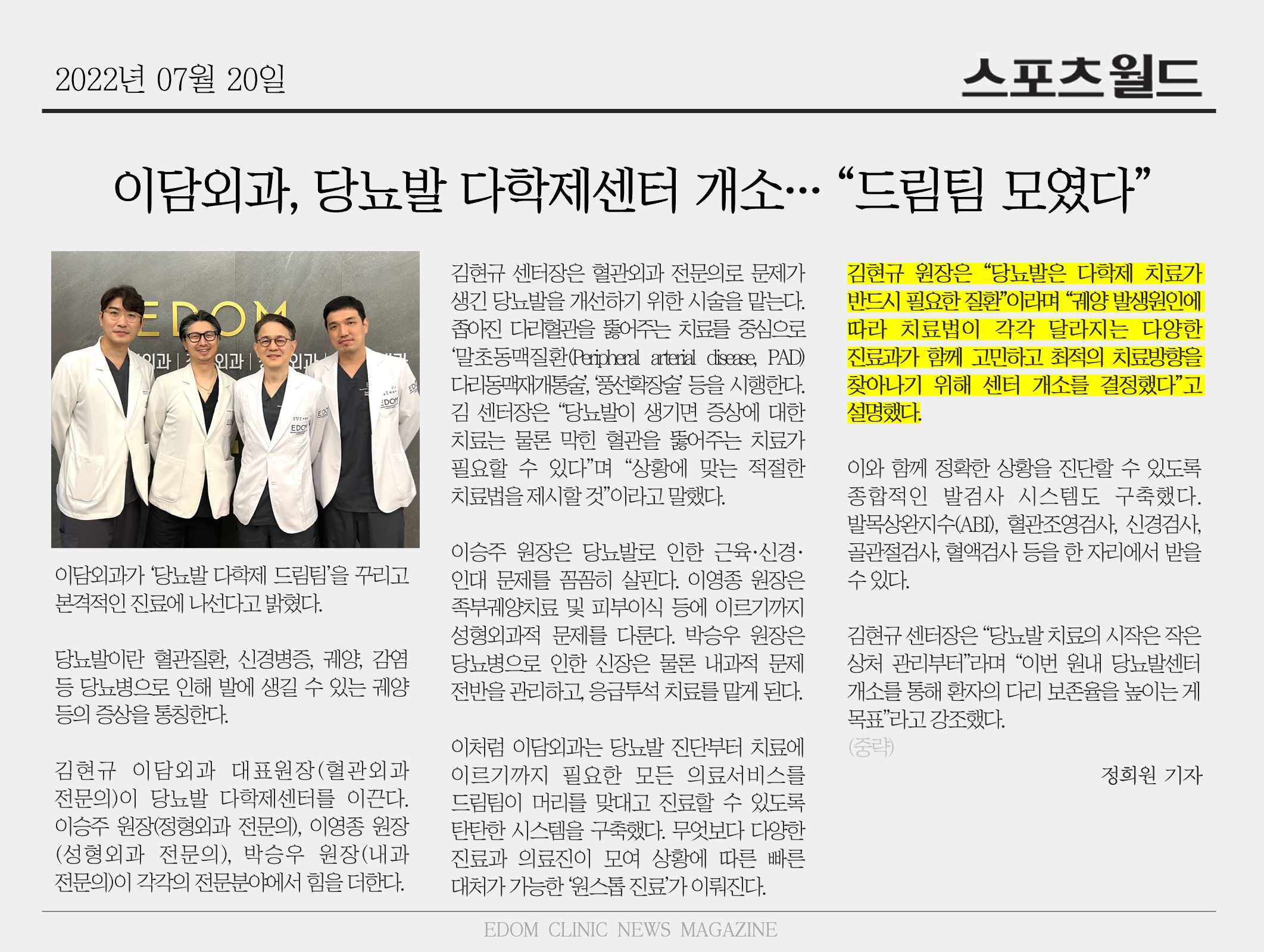 이담외과, 당뇨발 다학제센터 개소… “드림팀 모였다”