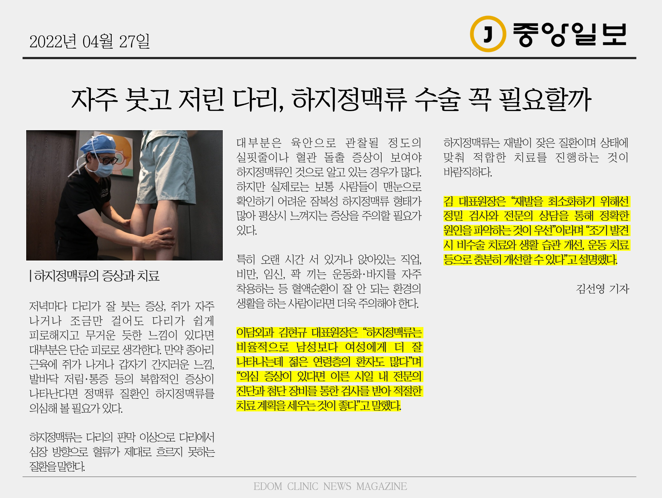 자주 붓고 저린 다리, 하지정맥류 수술 꼭 필요할까 ( 22.04.27)