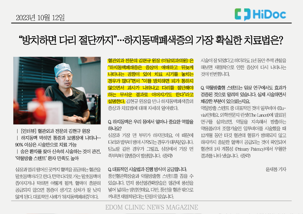 “방치하면 다리 절단까지”…하지동맥폐색증의 가장 확실한 치료법은?