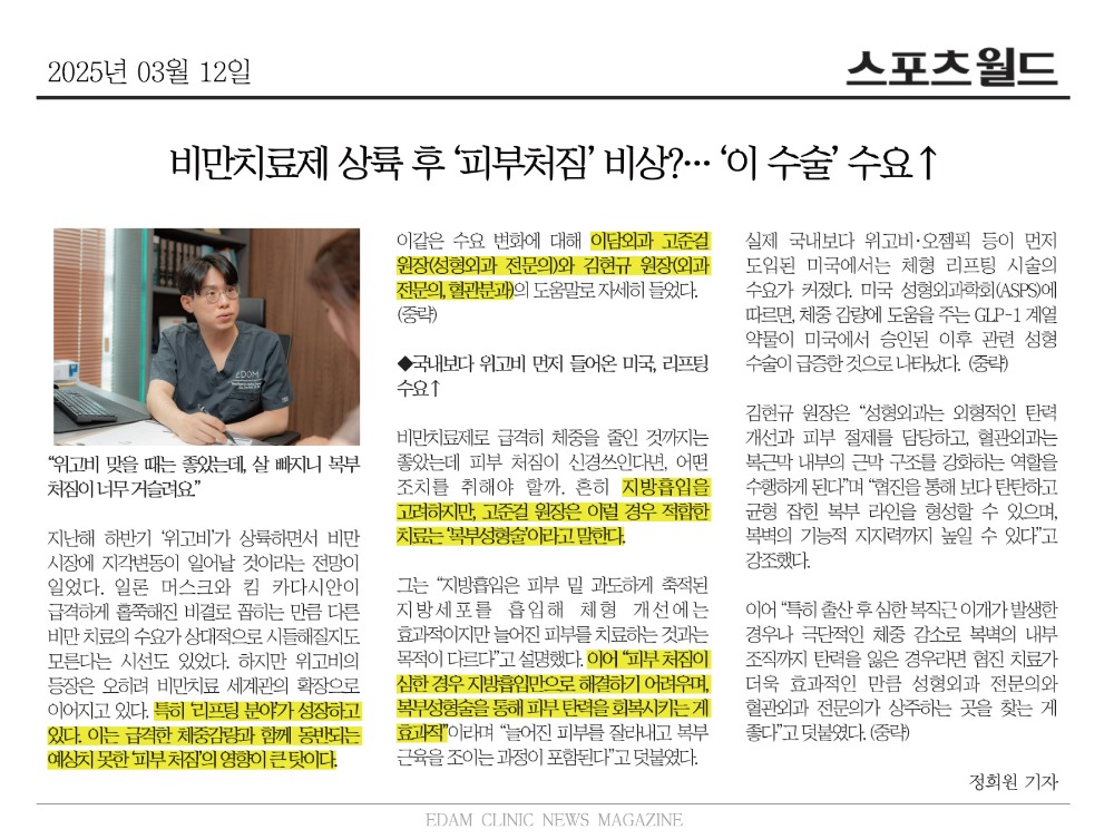 비만치료제 상륙 후 ‘피부처짐’ 비상?… ‘이 수술’ 수요↑