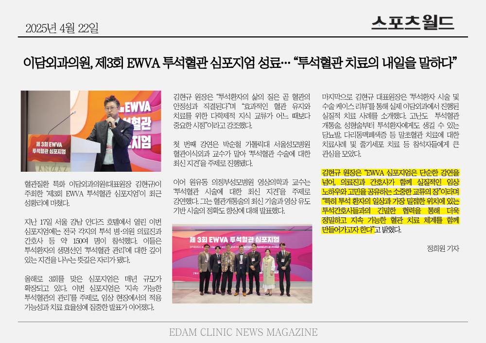이담외과, ‘제3회 EWVA 투석혈관 심포지엄’ 성료… “투석혈관 치료의 내일을 말하다”