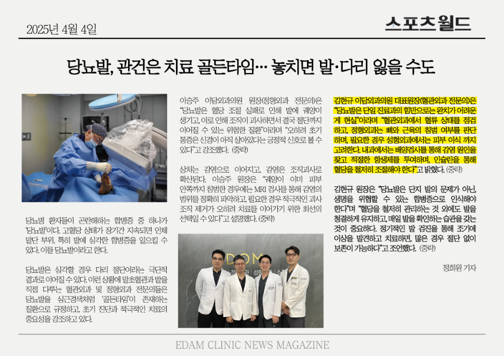 당뇨발, 관건은 치료 골든타임… 놓치면 발‧다리 잃을 수도
