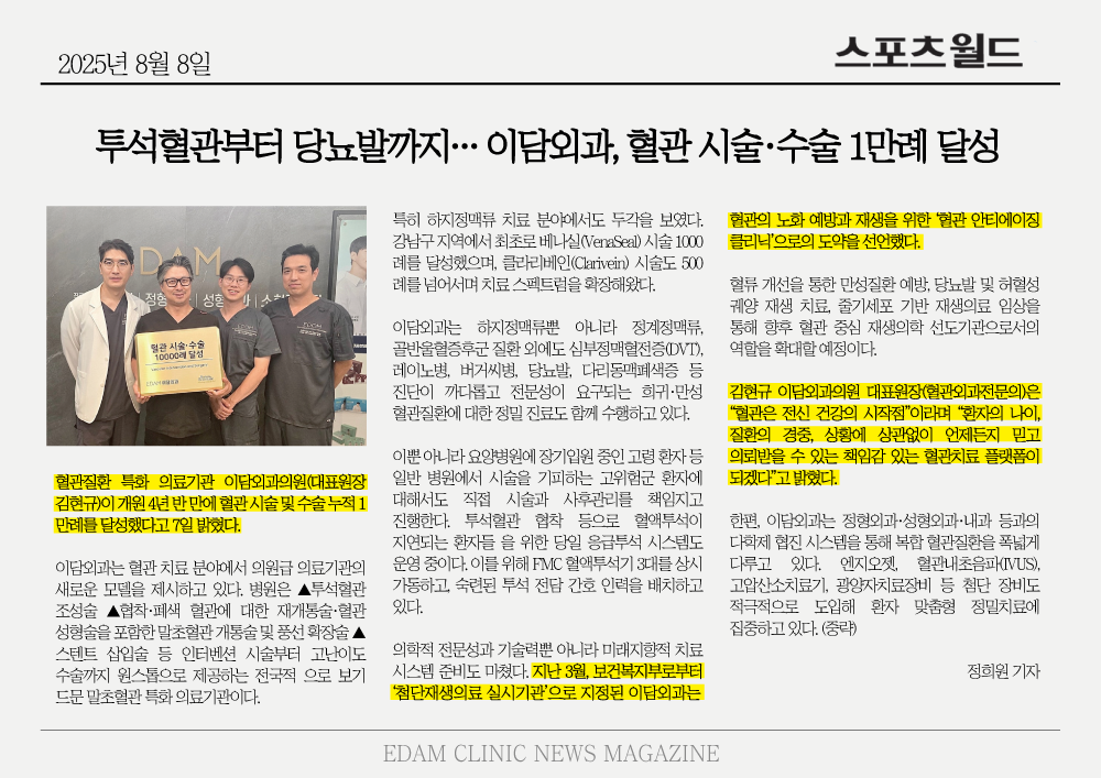 투석혈관부터 당뇨발까지… 이담외과, 혈관 시술·수술 1만례 달성