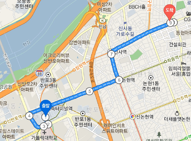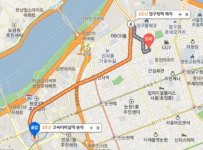 도산공원사거리 [간선] 141, 342, 343 [지선] 3011, 4212