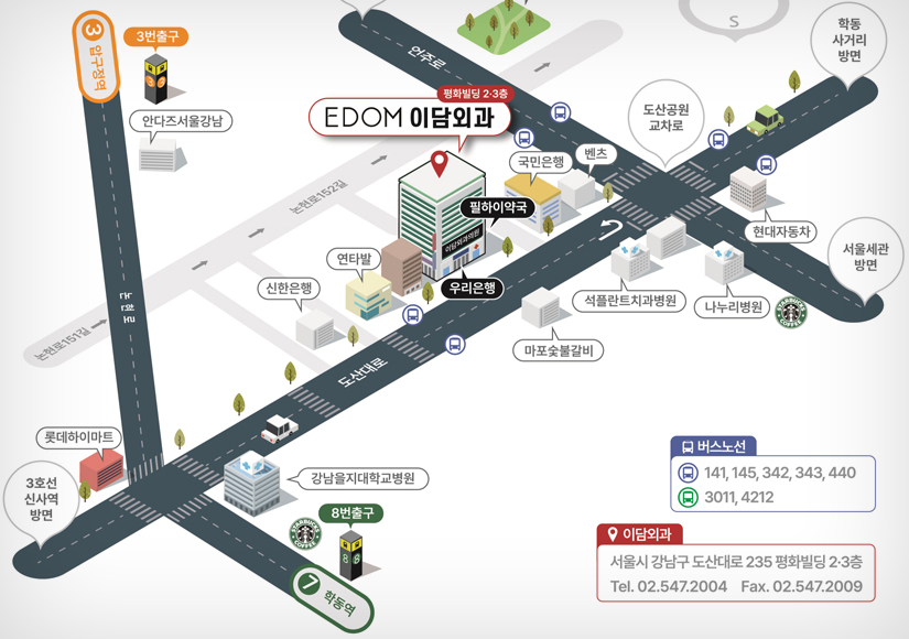 주소 : 서울시 강남구 도산대로 235 평화빌딩 3층
