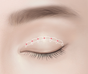 눈꺼풀 피부와 검판을 묶어