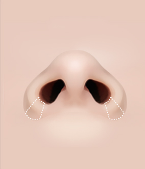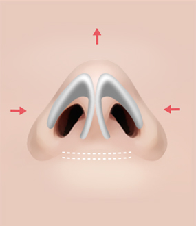 퍼진 코를 모아주고 펑퍼짐한 콧날개살을 축소하여